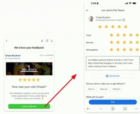 When they click the review request link, it will open straight into the "leave a review" window in your Google Business Profile so all they have to do is tap the stars and type.
